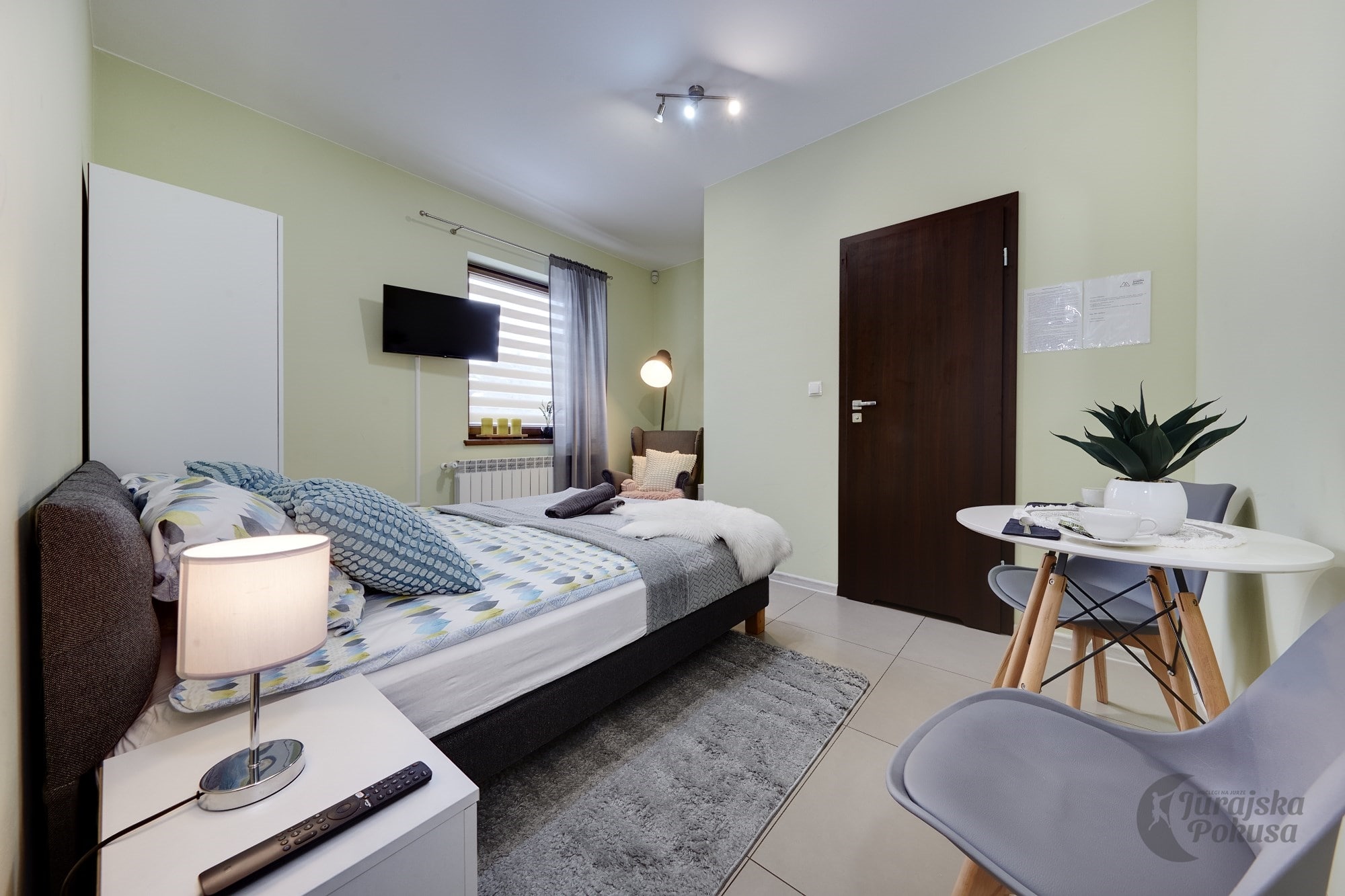 Pokój dwuosobowy Romantic to idealne miejsce dla par, które chcą spędzić czas w Jurajskiej Pokusie. Pokój jest elegancki, a łóżko małżeńskie zapewnia komfortowy wypoczynek dla obu gości.